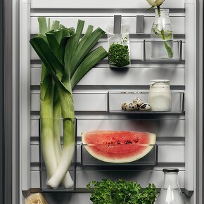 Die Kühl-/Gefrierkombination mit CustomFlex® bietet flexible Möglichkeiten der Lagerung: Ordnen Sie die Türfächer einfach so an, wie Sie es möchten. So haben Sie Lebensmittel, die häufig verwendet werden, schnell zur Hand.