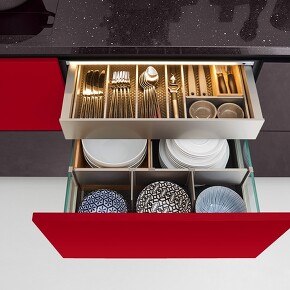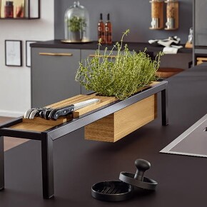Modulare Küchen kommen dem Wunsch nach flexibler, freistehender Küchenplanung entgegen. Die Küchenmöbel von Ballerina eröffnen diesen kreativen Spielraum: TakeAway-Boxen aus Massivholz sowie eine FreeBRIDGE für Kräuter und Gewürze organisieren den gesunden Lifestyle. Auch der rollbare Küchen-Trolly FreeMOBILE entpuppt sich als perfekter Begleiter, ob am Esstisch oder als Grillassistent auf Terrasse oder Balkon.