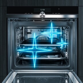 Jetzt können Sie Ihre Gerichte noch unbeschwerter genießen, denn um die Backofenreinigung müssen Sie sich keine Gedanken mehr machen. Nur ein Knopfdruck, und Ihr Backofen reinigt sich wie von selbst. Bei diesem Prozess, Pyrolyse genannt, erhitzt sich der Backofen auf sehr hohe Temperaturen, die Reste zerfallen zu Asche. Anschließend kann der Backofen ganz einfach ausgewischt werden.
