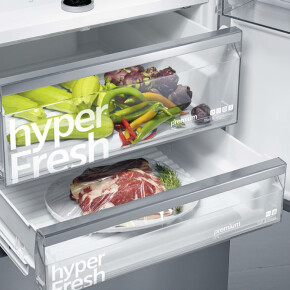 Ob Fisch, Fleisch, Obst oder Gemüse: Die hyperFresh Frischesysteme bieten für jedes Lebensmittel die richtige Lagerung, denn zusätzlich zu der Temperatur nahe null Grad lässt sich auch der Feuchtigkeitsgehalt auf das Eingelagerte abstimmen. Damit brauchen Sie nicht mehr so oft einzukaufen, da Ihre Lebensmittel bis zu 3 x länger frisch und vitaminreich bleiben. hyperFresh.de
