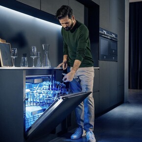 Neuheit bei Geschirrspülern: Die innovative glassZone im Oberkorb bietet auch wertvollsten Gläsern Sicherheit und optimalen Halt. Sechs Düsen sorgen für eine sanfte Reinigung und brillanten Glanz. Und wenn einmal unerwartet Gäste vor der Tür stehen und es etwas schneller gehen muss, ist varioSpeed on demand die perfekte Lösung. Damit wird selbst ein schon laufendes Spülprogramm beschleunigt – für eine bis zu dreimal schnellere Programmlaufzeit. Der Spül-Turbo kann jederzeit zugeschaltet werden – von zu Hause oder unterwegs über die Home Connect App.