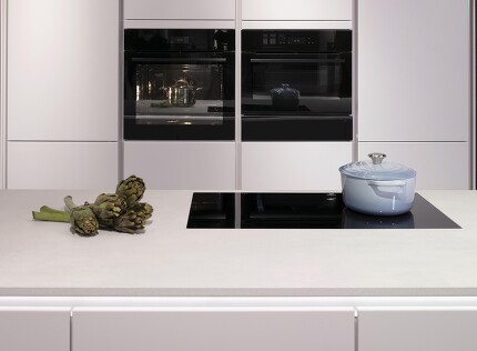 Sie überlegen gerade, in welcher Farbgebung Sie Ihre neue Küche gestalten möchten? Oder geht es zur Zeit darum, die Wände in Ihrer Küche neu zu streichen, und die vorhandenen Küchenfronten sind bereits in Grau gehalten? Dann ziehen Sie unbedingt auch diese Wandfarbe in Erwägung: Altrosa. Es passt deswegen so gut zu jedem Grauton – ob uni oder Steindekor – weil Altrosa selbst Grauanteile enthält. Deswegen harmoniert es so schön mit grauen Fronten. Mehr als das hat die Kombination von Grau und Altrosé sehr viel Stil und Klasse, strahlt Eleganz aus und zugleich Weichheit und Wohnlichkeit. Einbaugeräte mit Edelstahlfronten machen sich sehr gut dazu wie das gezeigte Küchenbeispiel mit dem im Highboard eingebauten Backofen zeigt.