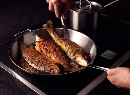Perfekte Kontrolle. Freiheit beim Kochen. Auf speziellen Induktionskochfeldern finden auch übergroße Töpfe und Bräter ihren Platz.