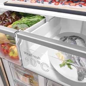 Mit dem VitaFresh Frischesystem in Kühlschränken werden Ihre Lebensmittel optimal gekühlt und bleiben so länger frisch. Durch das Airflow System, welches für gleichmäßige Kaltluftströme sorgt, behalten Obst, Gemüse, Fleisch und Fisch länger ihre Aromen.