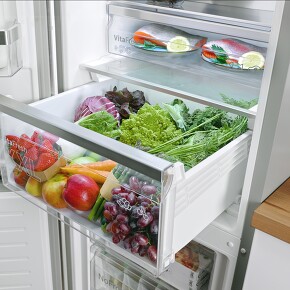 Das geräumige VitaFresh XXL System bietet bei einer Temperatur von 0° ideale Lagerbedingungen, um Fleisch und Fisch kühl sowie Gemüse und Obst knackig zu halten.