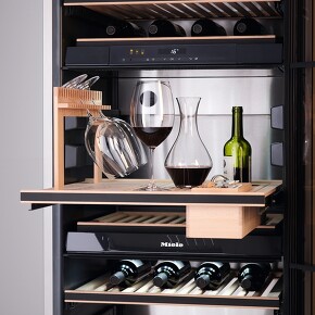 Erklären Sie Ihren Weinschrank zum individuellen Genießergebiet: mit dem einzigartigen SommelierSet exklusiv von Miele. Bereiten Sie edle Weine professionell aufs Dekantieren vor. Genießen Sie Champagner und Weißwein aus gekühlten Gläsern. Temperieren Sie Weinflaschen auch nach Anbruch immer perfekt. Und haben Sie Ihr komplettes Handwerkszeug immer griffbereit.