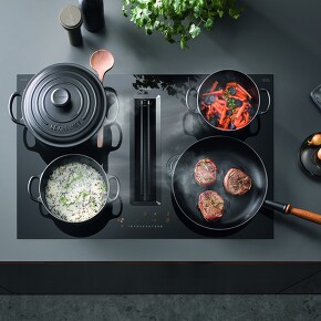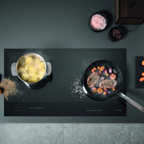 Das neue Miele TwoInOne verlegt den Dunstabzug nach unten. Ihr Wohnbereich bleibt angenehm geruchsneutral, während Sie Ihrer Leidenschaft für das Kochen nachgehen.